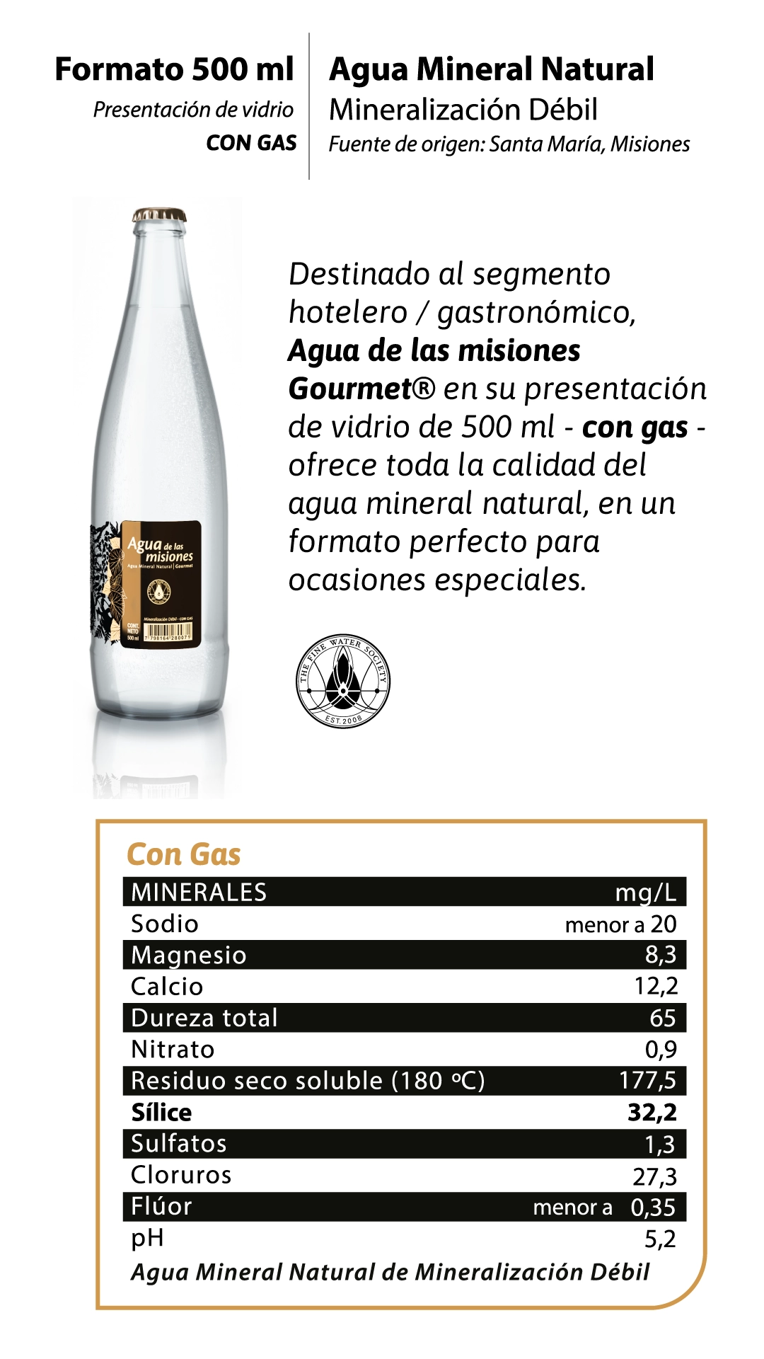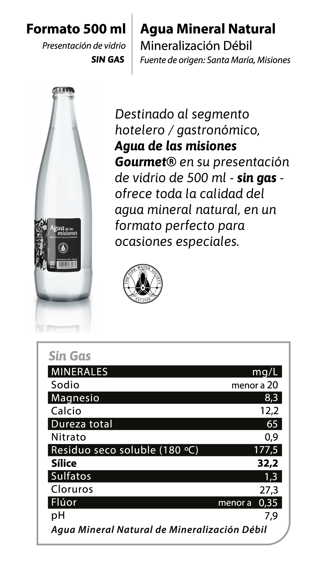 Fine Waters constituye una referencia mundial de las aguas finas de alta calidad. Su objetivo es difundir la idea entre la opinión pública, los profesionales de bebidas y alimentos y los consumidores en general de que “el agua no es solo agua”, sino un producto natural, que tiene terroir, da bienestar y guarda experiencias.