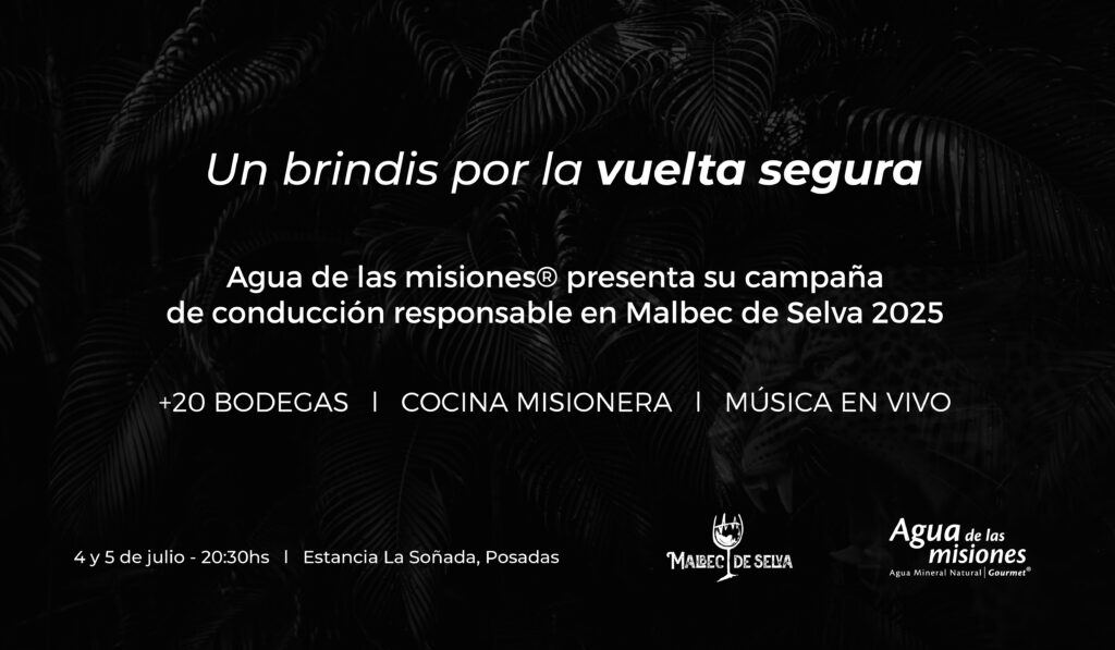 En el marco de la tercera edición de Malbec de Selva, uno de los eventos más destacados del turismo gastronómico regional, Agua de las misiones anuncia el lanzamiento de su campaña de concientización “Un brindis por la vuelta segura”, bajo el concepto #ElQueConduceEligeAgua.
